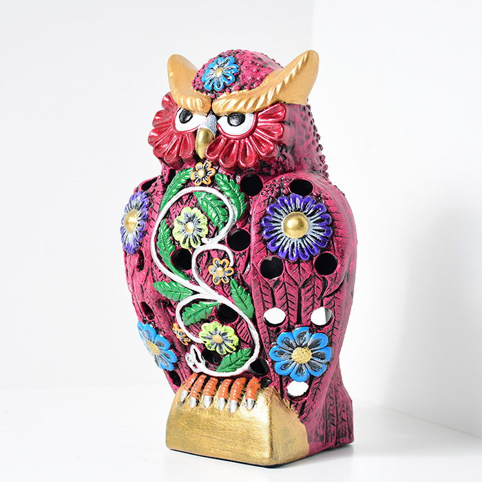 Descripción/ característica | 0bjeto cerámico decorativo, como lampara. Los colores predominantes son fucsia, dorado, perlado y metálico. | |