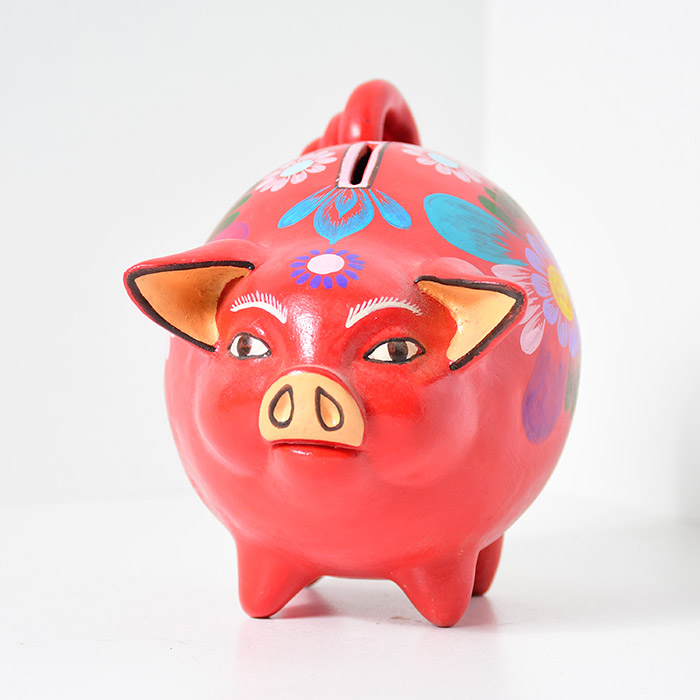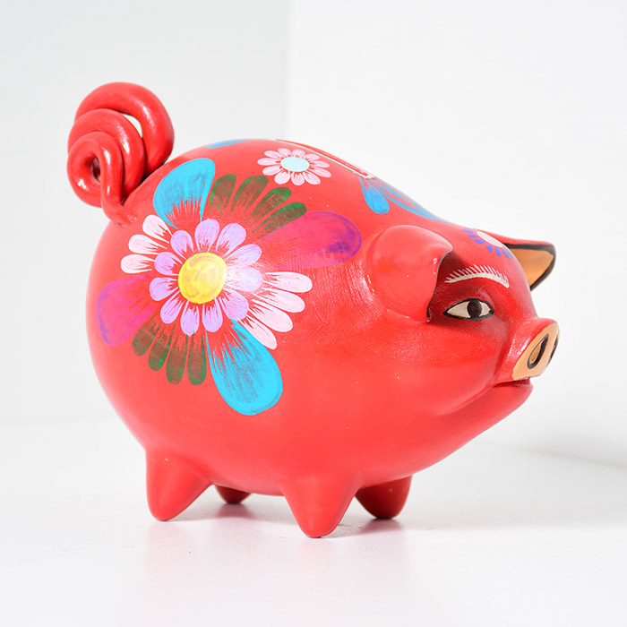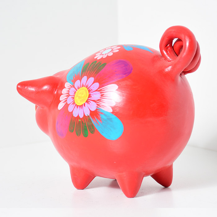 Descripción/ característica | Objeto cerámico utilitario, sirve como alcancía. Los colores predominantes son rojo y blanco. | |